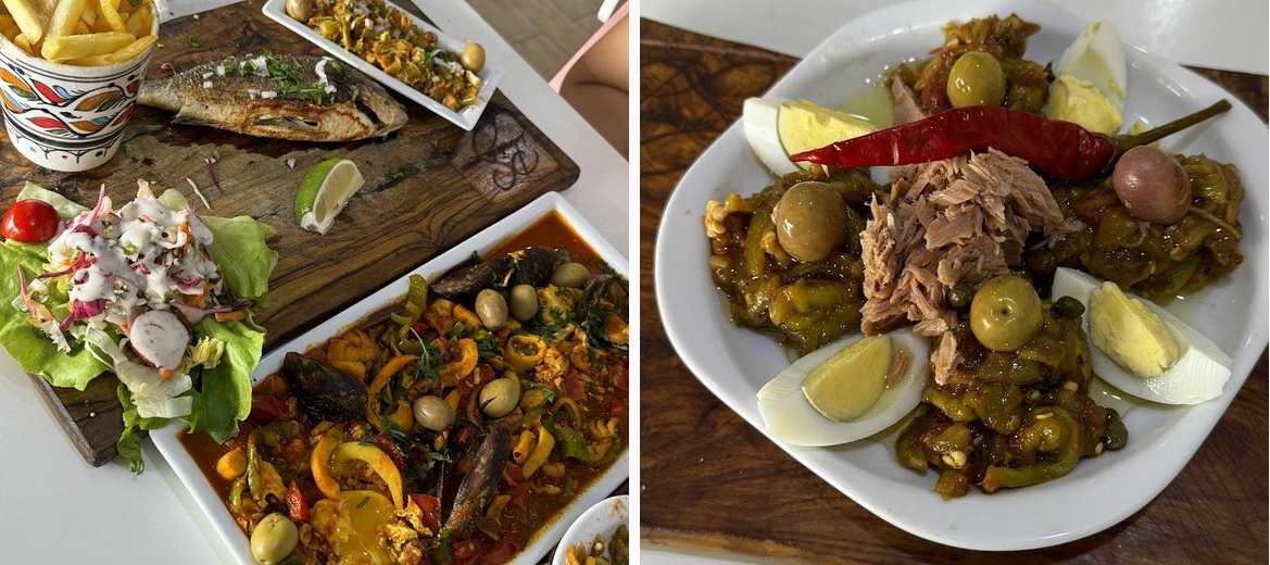 The food was delicious, freshly made with the chef's touch, tradition and innovation together, it was an explosion of flavours in our mouth. The friendly atmosphere contributed to a nice lunch. Near by the fish market in La Marsa you are at few steps from the seaside. Really recommended it worth's a visit as a budget restaurant